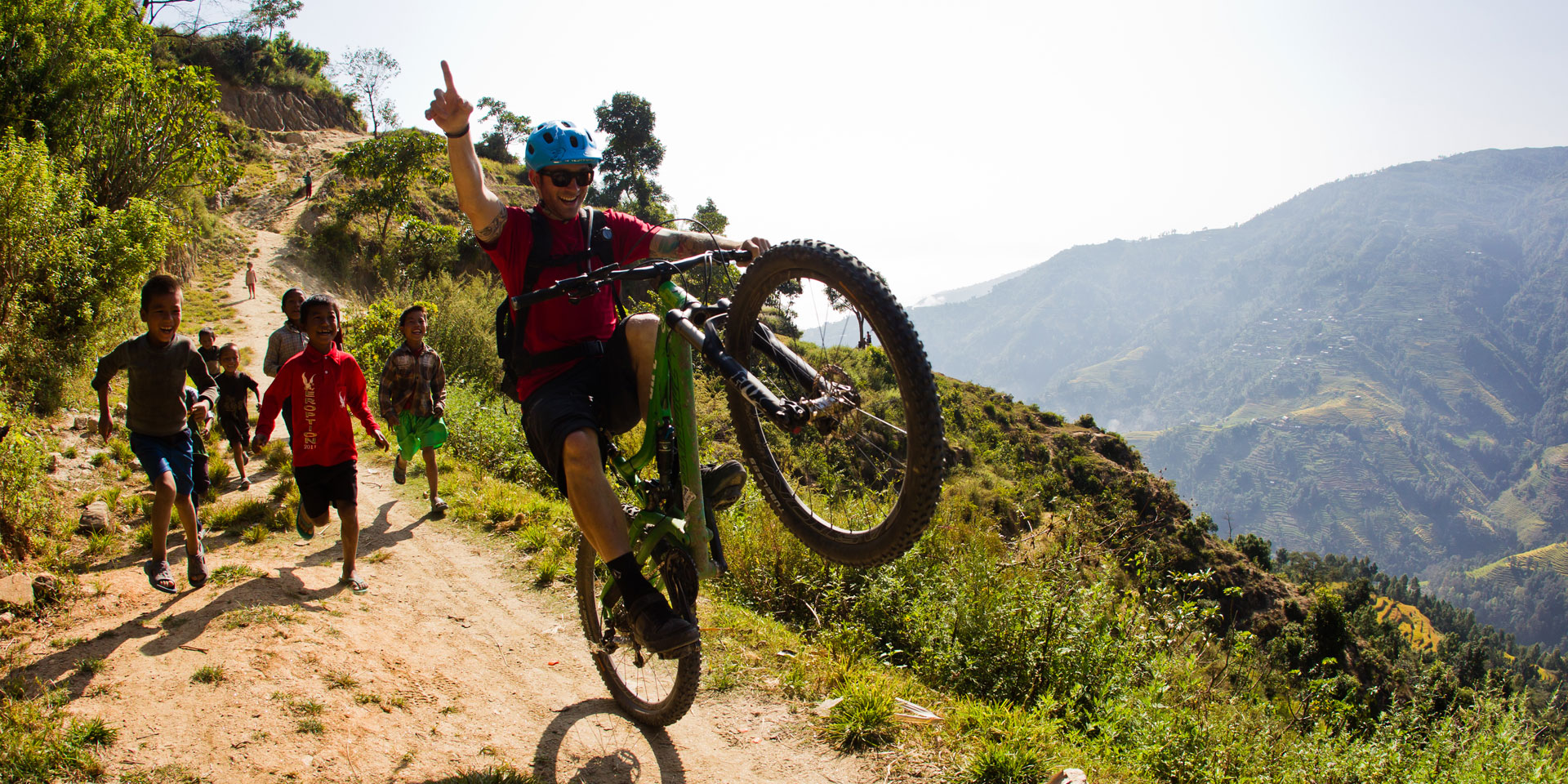 Riding trails in Nepal vary from wide, road-like avenues to narrow, slippery paths built out over enormous drops. In some places, a fall from the trail would be fatal. One must pay attention at all times and never ride beyond your limits. Your guide is there to prepare you for the trails ahead and there’s ALWAYS time for you to stop and walk any features that you’re not comfortable riding.