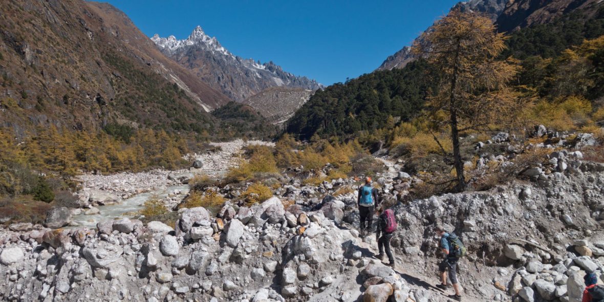 No rush today as we are descending all the way. We start from Ramche mid morning and descend along the Yalung moraine, back down to the forest above Tseram where we will stop for lunch. After lunch we continue descending through delightful sections of thick primary forest to the couple of lodges at Torangden, which has various spellings. At Andaphedi, look back as it will be your last chance for a view of Kabru before descend into the stunning rhododendron forests.