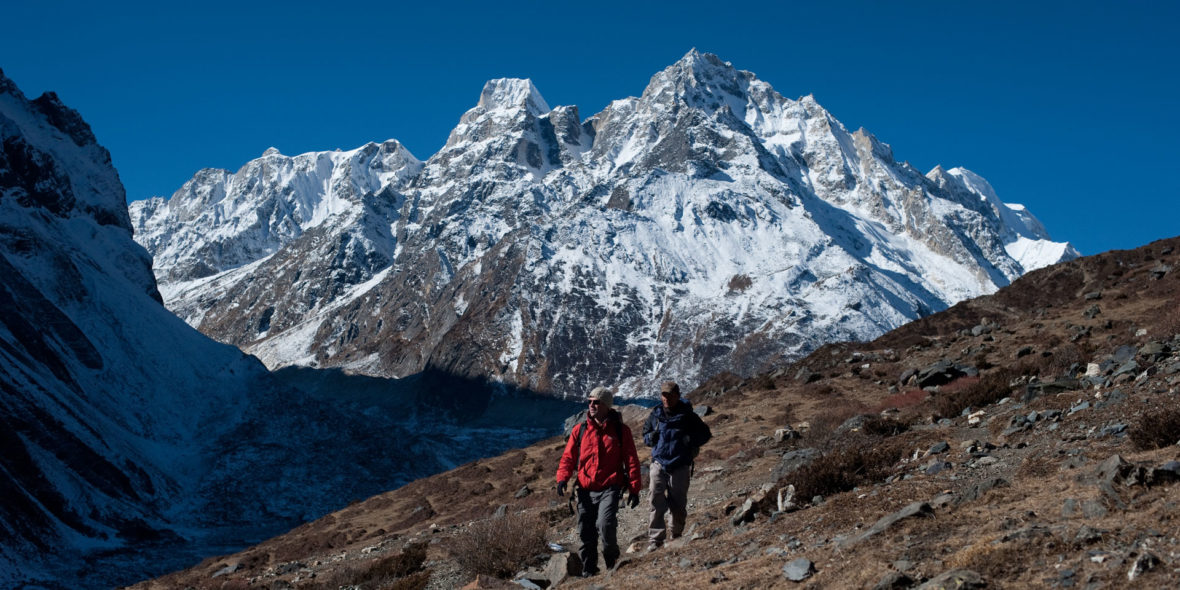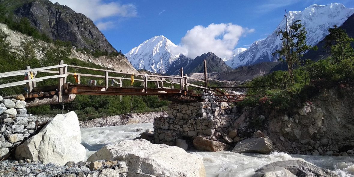 We leave on the trade route to Tibet and climb through the ruins of Larkya bazaar, one of the trade markets that flourished years back. After two hours of climbing past glaciers, with increasingly awe-inspiring panoramas, we come to Dharamsala, where we have lunch and gaze out at the views.