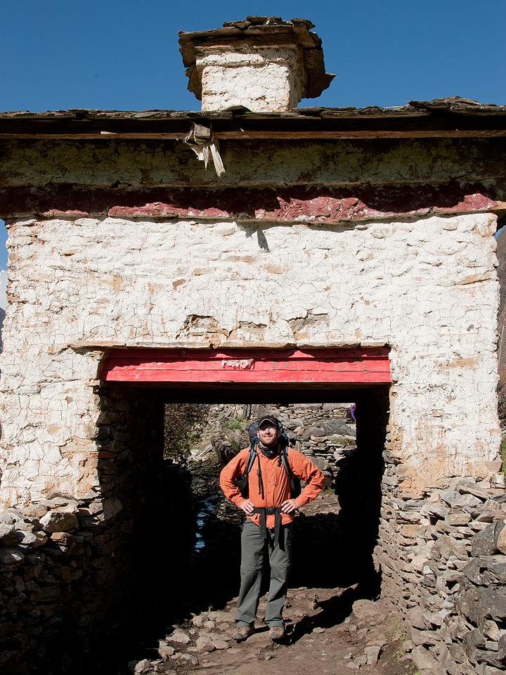 This is the start of the lower Nubri region called Kutang, where the people are ethnically Tibetan but speak a different dialect than the people of upper Nubri where the people are pure Tibetans. The Kutang dialect, called ‘kukay’, is a mix of Tibeto-Burman and Gurung. We have views of Lumbo Himal to the rear, as well as Lapuchen and Dwijen Himals.