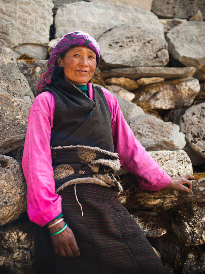 If the weather is good, you will see the village women weaving wool (baal) from Tibet into gowns – which are then traded back to Tibet. Taxes were actually paid to the Dzongka Dzong (fortress) at the border of Tibet, a few days walk from SamaGaon, as late as the 1940’s until it was taken over by the Ghorkas in the late 19th century. Later, after 1959, the region was home to Tibetan guerillas, and thus closed to trekking until 1992.