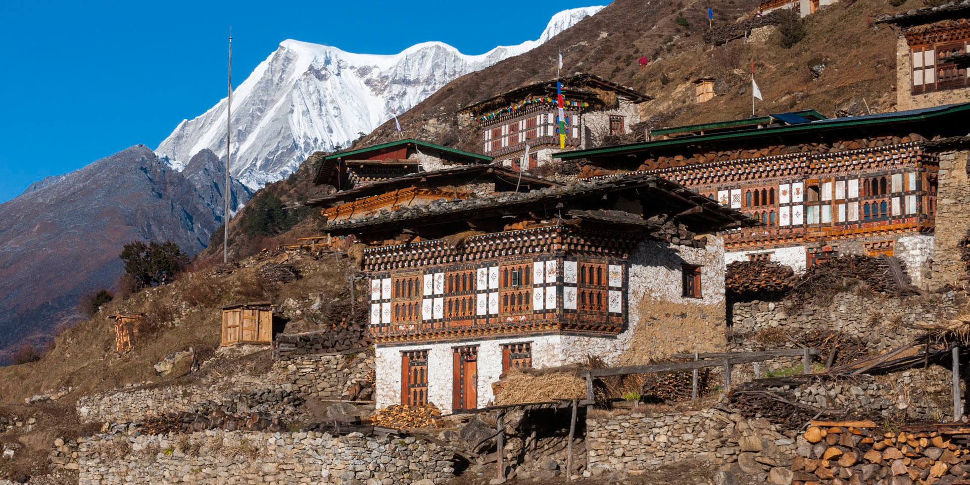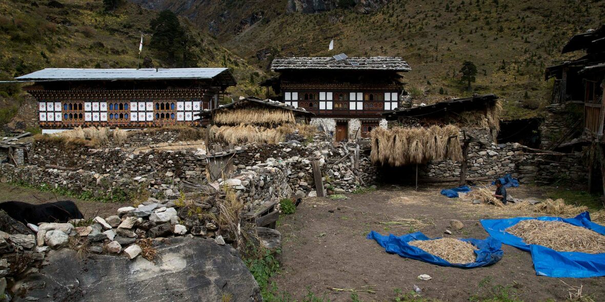 Shortly after leaving camp, cross a stream on a wooden bridge and ascend to reach a chorten below Lingshi Dzong, perched on the hilltop with a commanding view of the green hills, a winding river and magnificent peaks. Descend to Lingzhi village notable as a centre for medicinal herbs.