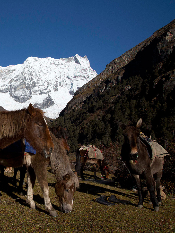 Alternatively, a 2 hour hike to a lake above camp provides a stunning location for photographs of Jitchu Drake. Green grass, grazing yaks, stunning mountain scenery – it doesn’t come much better than this. For a spectacular view of Jitchu Drake closer to camp (even better at sunrise if you can get up sufficiently early), follow the river for 20 minutes to a lone house and here the mountain is presented before you.