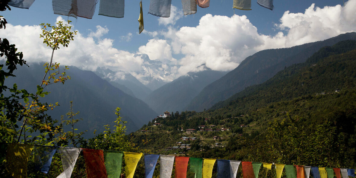 Today begins with a stiff climb up a ridge to Gogu La at an altitude of 4440 meters, taking nearly 4 hours to the top. After the pass the trail descends through rhododendron forest to a valley of dense forests of birch and fir trees.