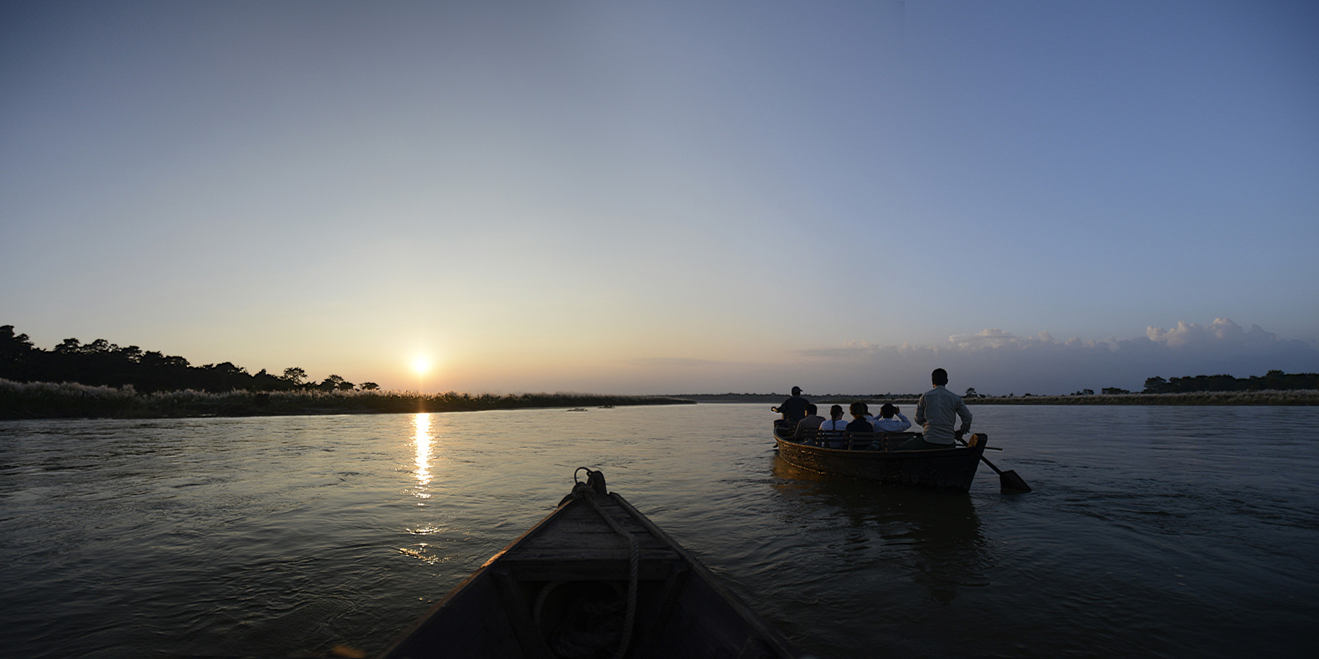 This morning after breakfast, we have an amazing experience for you. We will walk down to the boat ramp on the river and get in the traditional longboat for not only your transfer to Tiger Tops Tharu Lodge but this is also an incredible opportunity for bird spotting, seeing the crocodiles, Rhino and we even spot tigers from the boats from time to time.