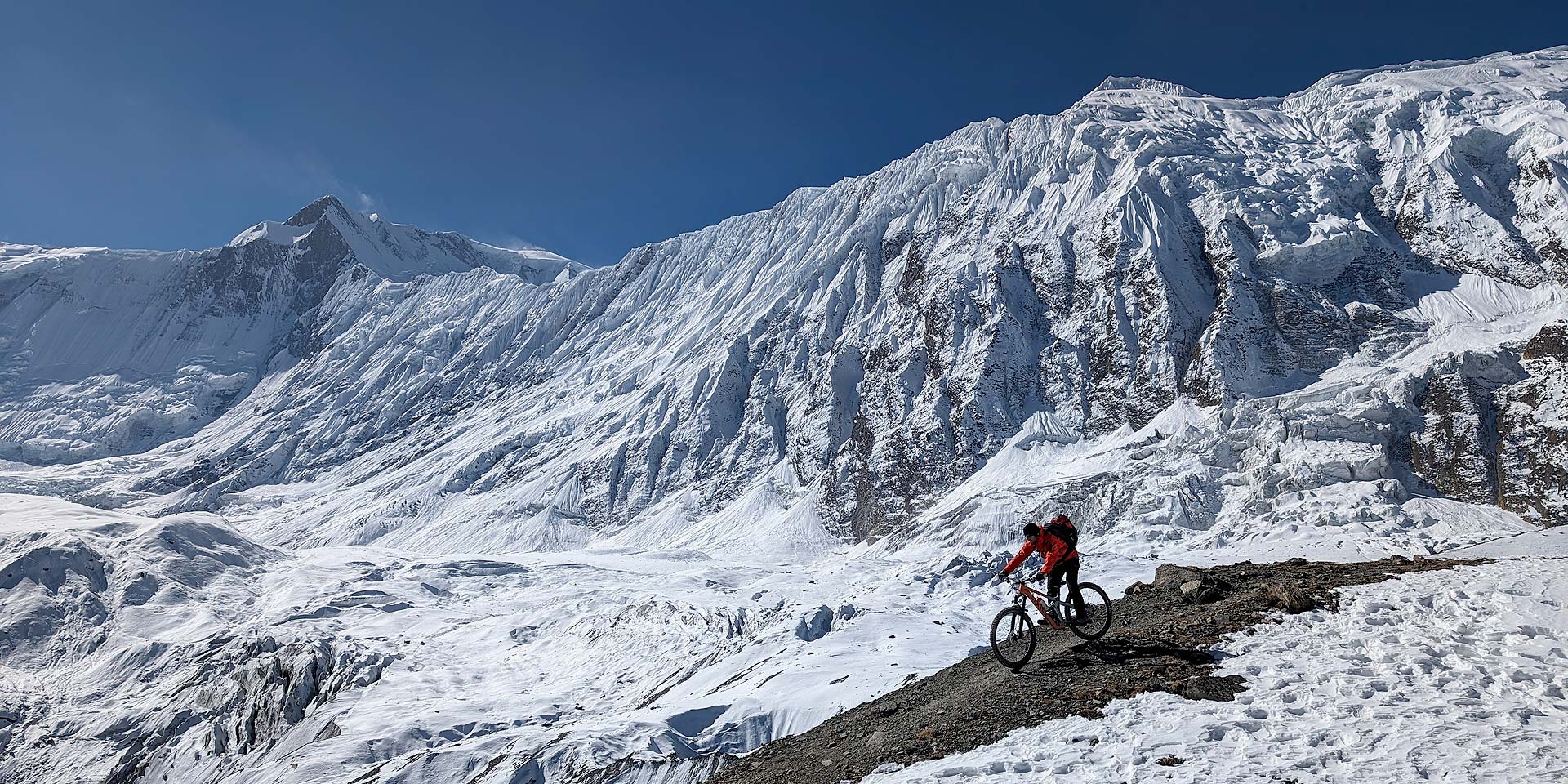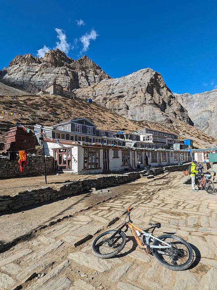After a demanding day yesterday, today is shorter but still involves significant climbing to Thorung Phedi. Our route begins by dropping down to the Jorsang River at 4,310 metres before ascending steeply. As we ride through the charming village of Tenki Manang, we’re treated to stunning views of Annapurna, Gangapurna, and Tilicho.