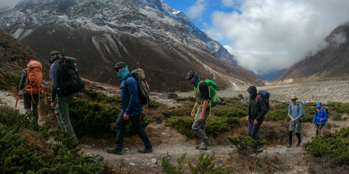 Leaving Khare we ascend a moraine ridge then follow ed by a scree slope to arrive at a small tea shop, this normally takes one and a half hours walking.